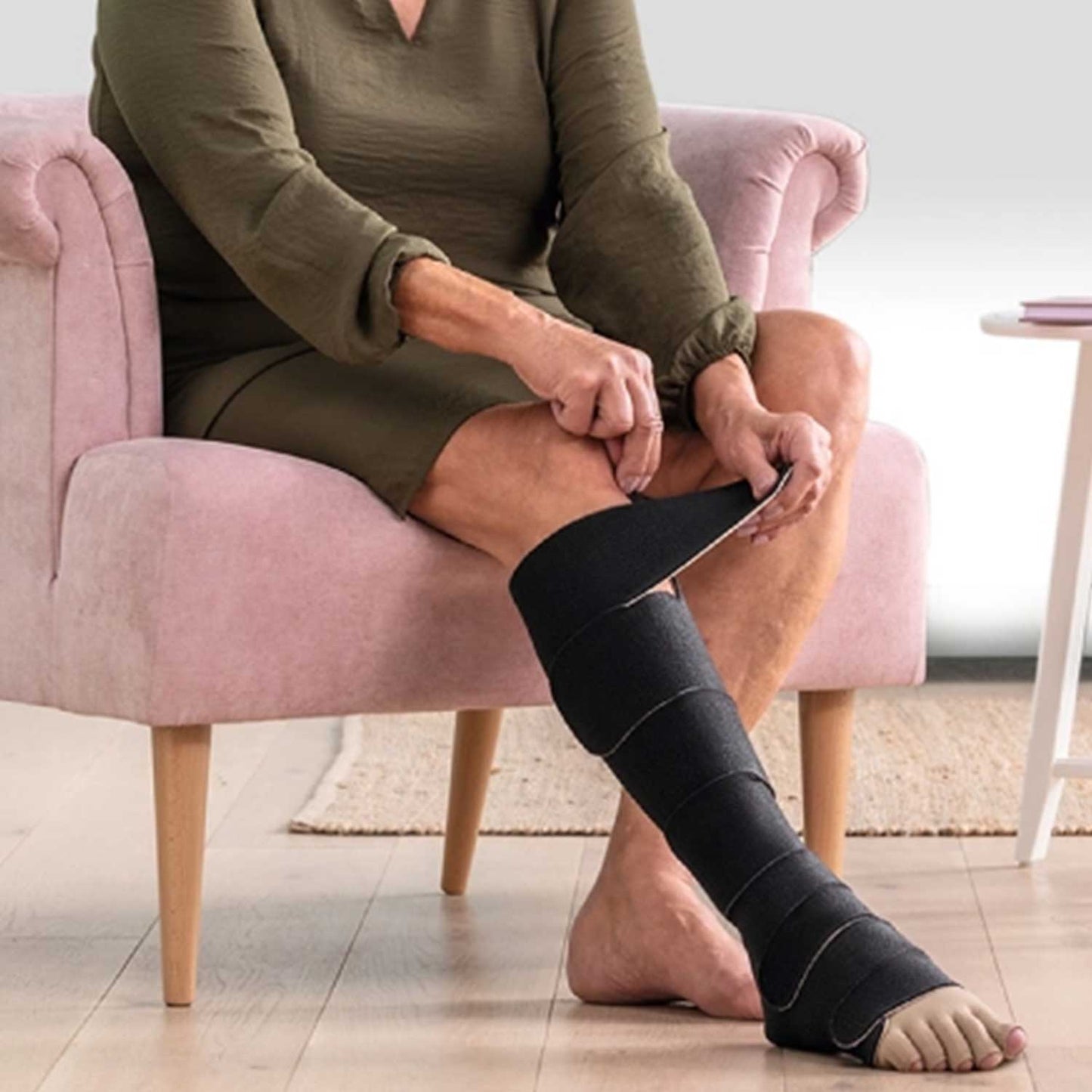 The Juzo Reversa Compression Wraps are versatile, adjustable short-stretch gradient compression garments that are a great alternative to traditional multi-layer bandages. These wraps are easy to put on and adjust, allowing for changes in body size and shape. They can effectively manage a variety of conditions such as poor circulation, leg ulcers, swelling, edema, and lymphedema.