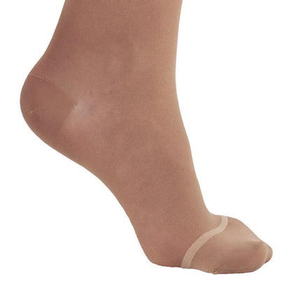The AW Style 16 Sheer Knee High provides 15-20 mmHg moderate compression for effective leg support throughout the day. With reinforced toe and heel pockets, a comfortable non-restrictive top band, and options for regular and wide sizes, these knee highs offer a reliable and comfortable fit. A great option for anyone seeking a durable, supportive sock with a sleek, sheer look.