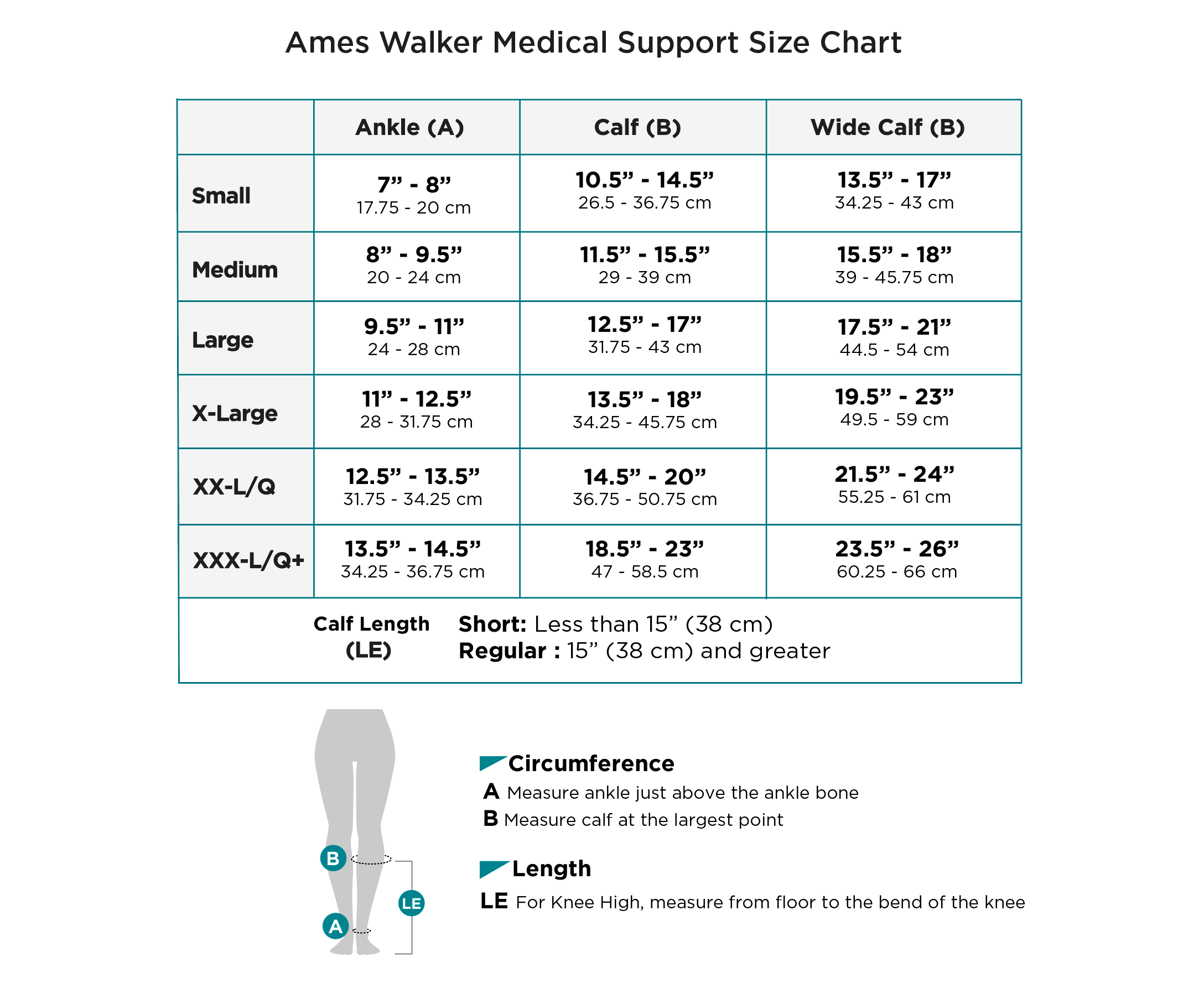*Sizing for graduated compression socks, stockings & armsleeves differs significantly from typical sizing, and is based on precise measurements. Each brand also varies. To ensure you are ordering the correct size for you, please refer to the size chart for this specific product before making your selection.