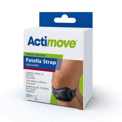 The Actimove Sport Patella Strap Adjustable provides relief for those who experience patellar tendonitis, patellofemoral pain syndrome, chondromalacia patellae, Osgood-Schlatter disease, or seek to prevent re-injury. Designed with a high-density insert, this strap offers targeted pain relief by increasing pressure on the patella tendon while providing balanced warmth and medical compression. Made with COOLMAX® AIR technology, the neoprene-free, lightweight strap is quick-drying and moisture-wicking for comfort during physical activity. A secure fit is achieved by the silicone dot lining on the interior, so you do not have to worry about it sliding off. The strap can be tightened or loosened to fit your needs.