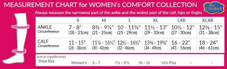 Dr. Comfort Women's Cotton Knee High - 10-15 mmHg the ultra-soft feel of all-natural cotton with superior color-fastness in a casual sock for comfortable everyday wear. Dr. Comfort's Shape-To-Fit Compression Wear combines function, fashion, and comfort -- for preventative medically correct support that's attractive, too. Our medical professionals have designed a full line of compression wear for men and women. Our socks, hosiery, and specialty medical products make it easier to do what's best for your health and wellness.