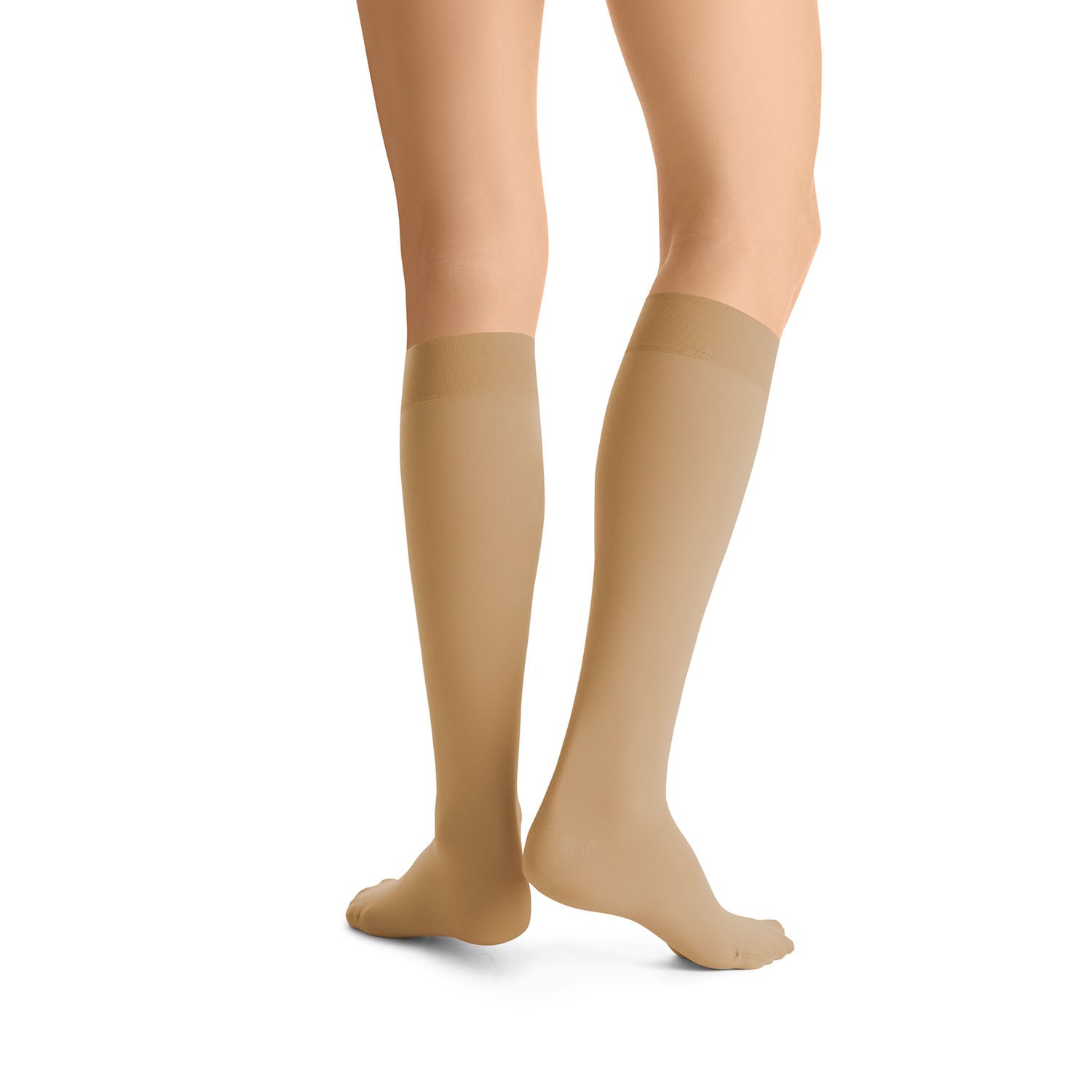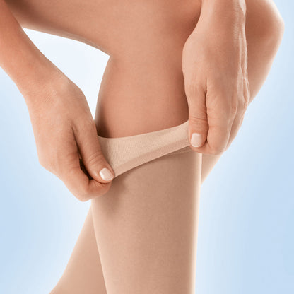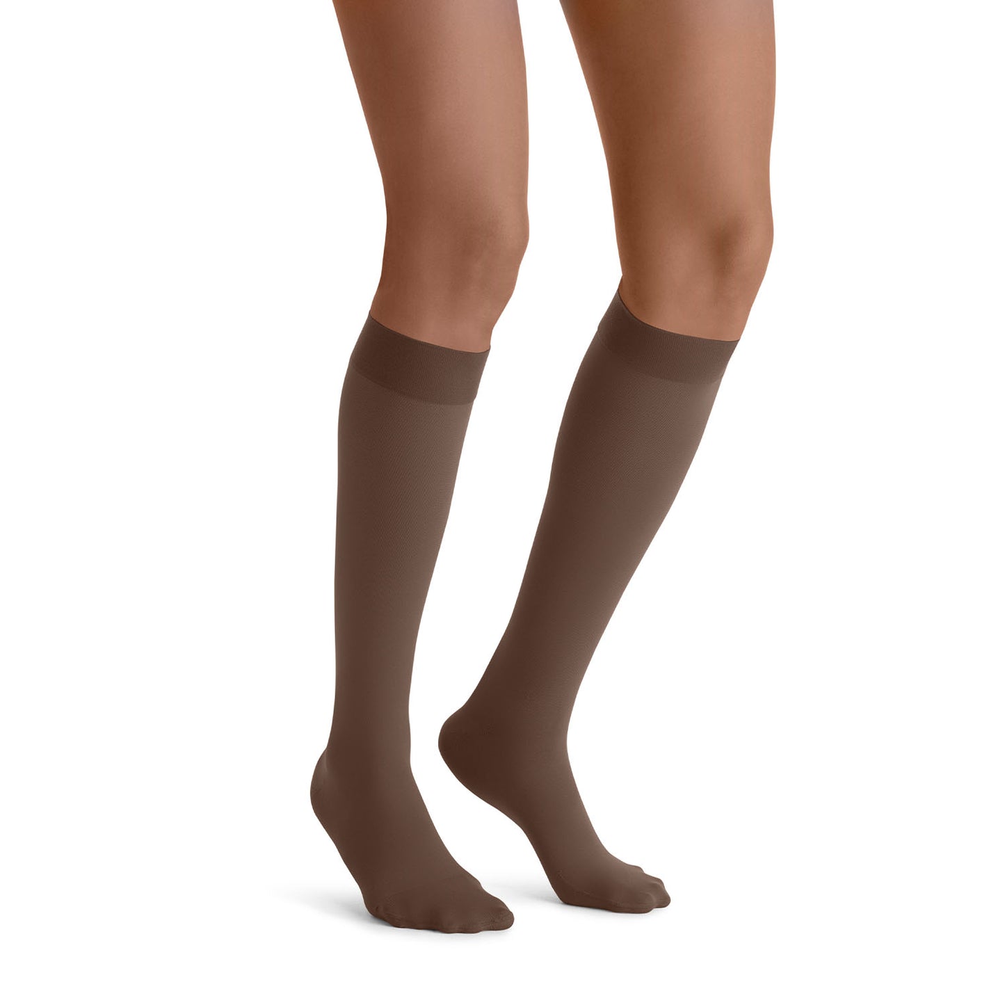 Now, more from JOBST® featuring SoftFit technology: extra firm compression closed toe opaque knee highs. JOBST® new innovative SoftFit technology is a combination of softly-adhering silicone yarns with less tension in the top band, providing more comfort and less slippage. JOBST® Advance Comfort, a unique blend of soft yarns and finishes, help keep you cool, dry, and comfortable. And the reciprocated heel and toe provide better fit and durability. Innovative fibers quickly absorb and transport moisture to the outer side of the stocking and make the stocking extremely soft, particularly on the inside. Plus, they are easy to put on!