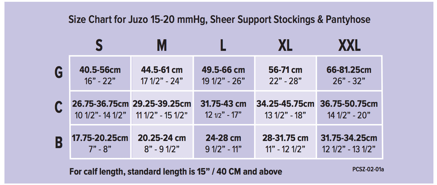 Juzo 15-20mmHg Sheer Support Hosiery Size Chart