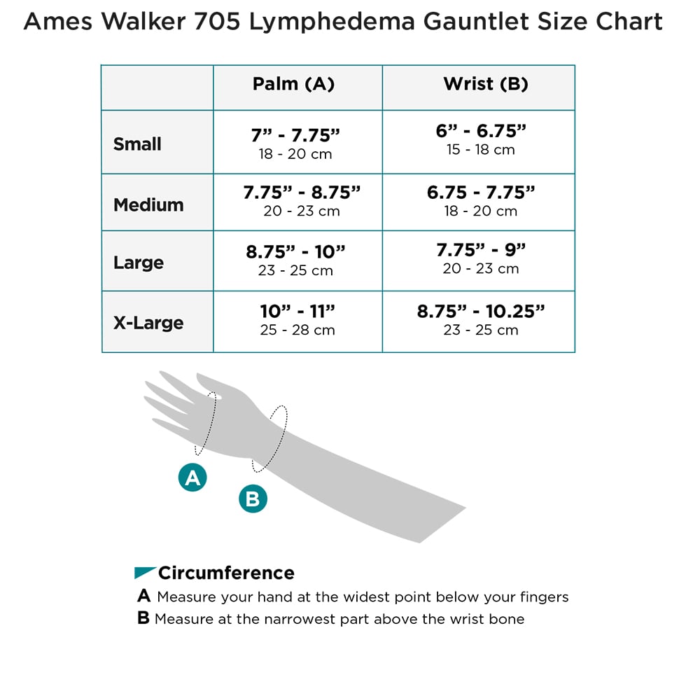 The Ames Walker Style 705 Gauntlet offers effective support for individuals managing lymphedema-related hand and wrist swelling. Crafted with firm, therapeutic compression, this comfortable and durable gauntlet delivers relief where you need it most. With a wide comfort band to ensure it stays securely in place, the 705 is a trusted solution beyond leg compression—and proudly made in the USA.