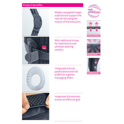 - Easy-glide polycentric hinges mimic knee movement for added comfort and control