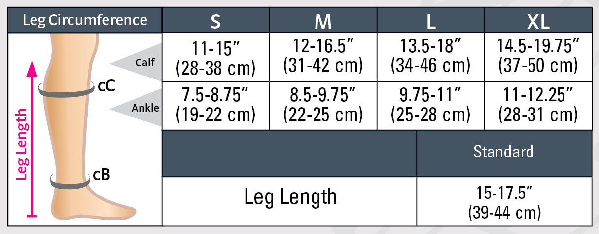 *Sizing for graduated compression socks, stockings & armsleeves differs significantly from typical sizing, and is based on precise measurements. Each brand also varies. To ensure you are ordering the correct size for you, please refer to the size chart for this specific product before making your selection.
