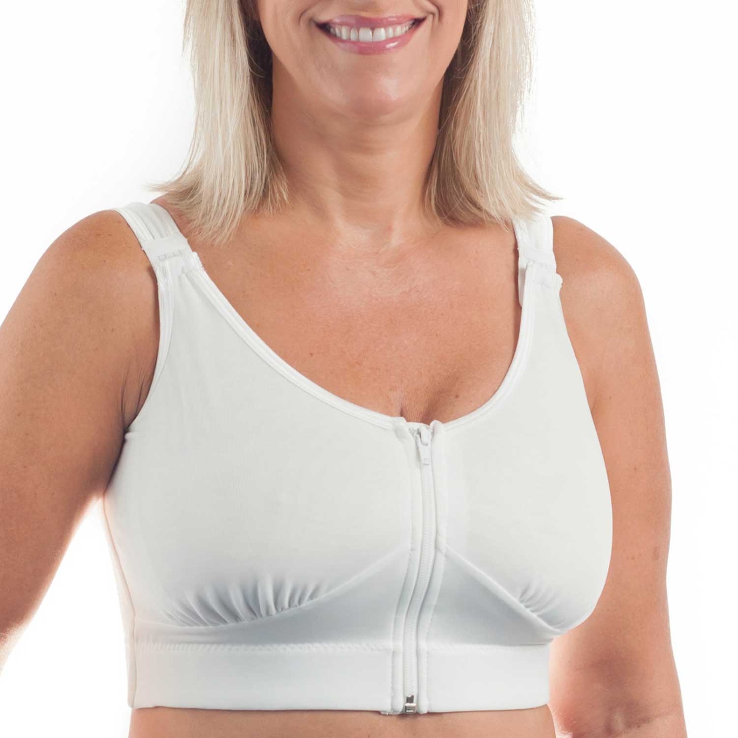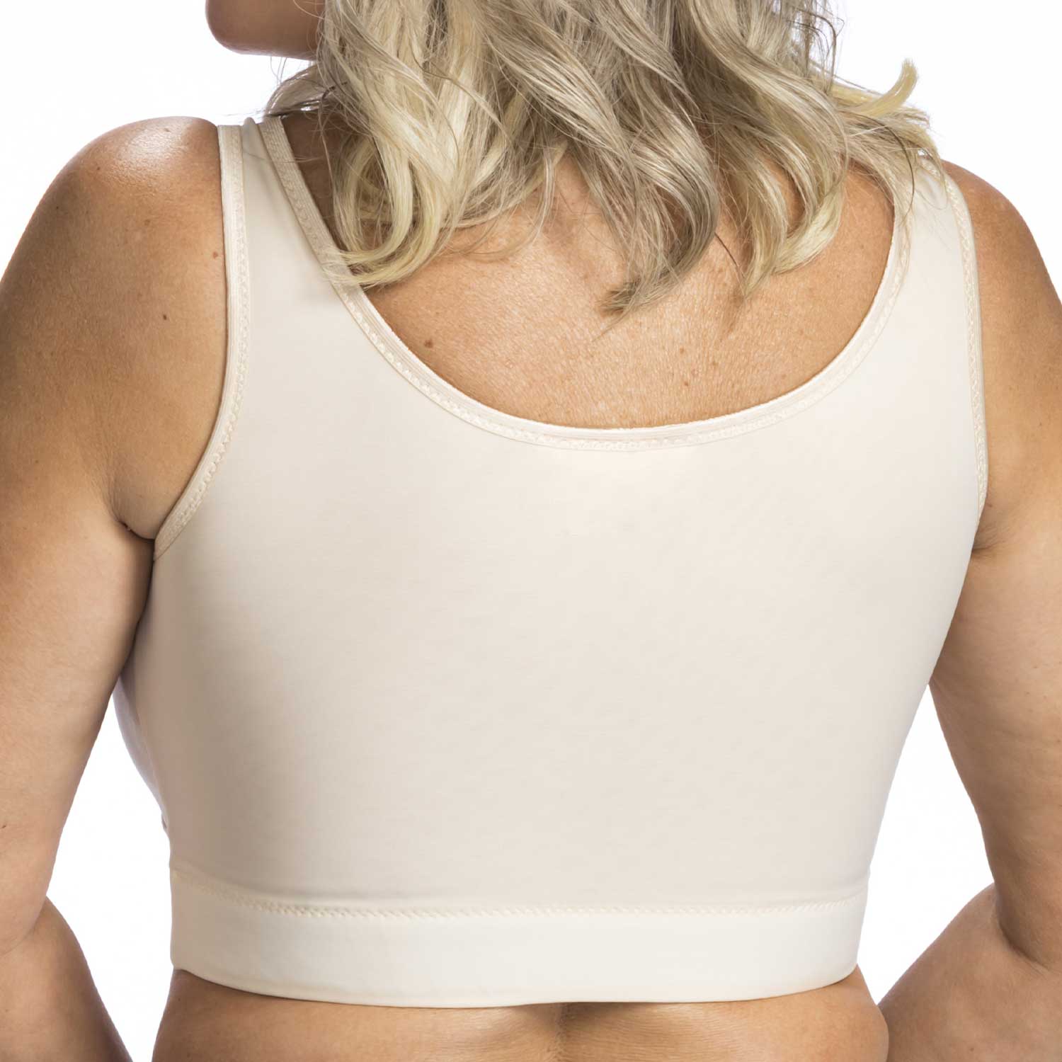 The Wear Ease® Compression Bra is perfect for recovery after breast surgery, such as augmentation, reconstruction, or reduction. It offers gentle compression all around the torso, making it comfortable for women experiencing post-surgical discomfort or breast and torso lymphedema. With a double layer design, high sides, and built-in slings, this bra lifts and covers the bust, while the wide soft under band base provides supportive comfort for the under arm (axilla) area.