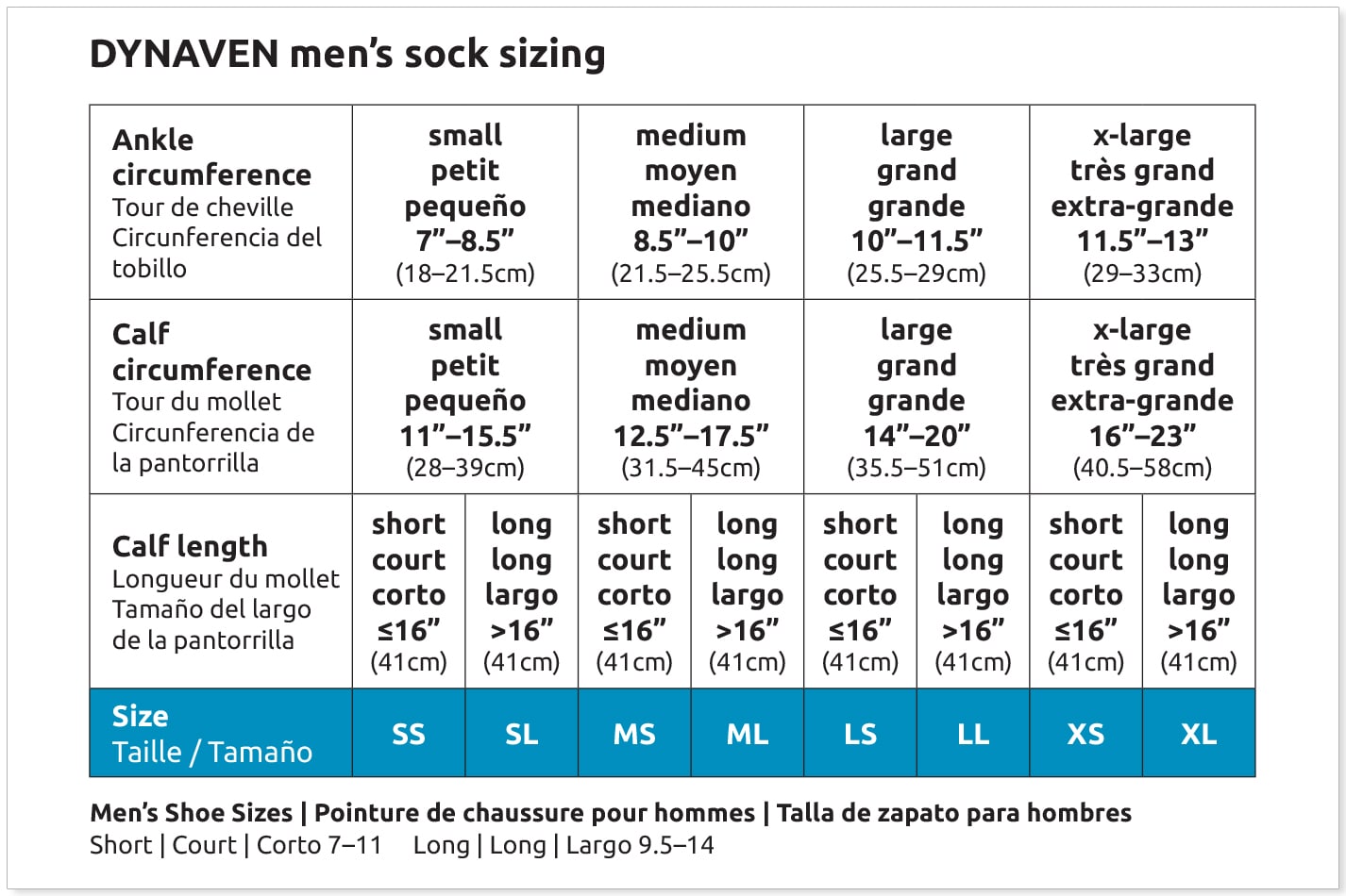 Dynaven Men's Socks Size Chart