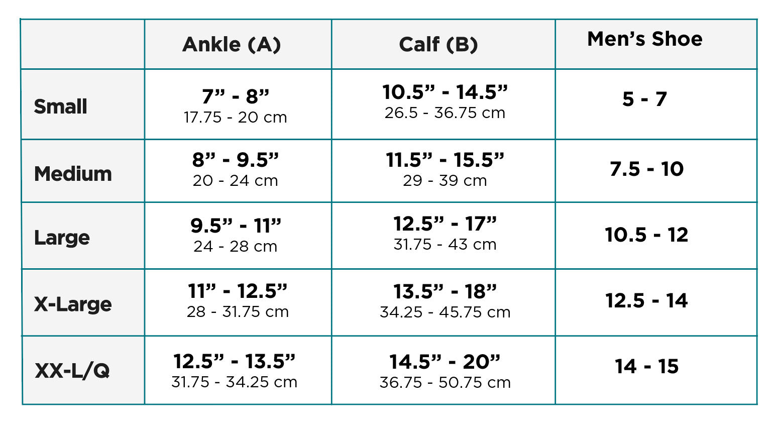 *Sizing for graduated compression socks, stockings & armsleeves differs significantly from typical sizing, and is based on precise measurements. Each brand also varies. To ensure you are ordering the correct size for you, please refer to the size chart for this specific product before making your selection.