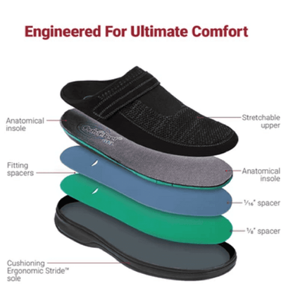 Orthofeet Men's Hudson Slippers are crafted with unique comfort features that are not found in any other slipper: COMFORTABLE FIT: Stretchable uppers that conform to the contours of your feet to provide a pressure-free fit. MAXIMUM SUPPORT: Premium orthotic insoles, featuring anatomical arch support, improve foot and leg alignment. The insoles are removable and can be replaced with custom-made orthotics. SOFT CUSHIONING: Ergonomic-Stride soles offer superior cushioning and stability, making every step super comfortable. WIDE TOE-BOX: Offers extra room for toe movement and alleviates pressure on bunions and hammertoes.