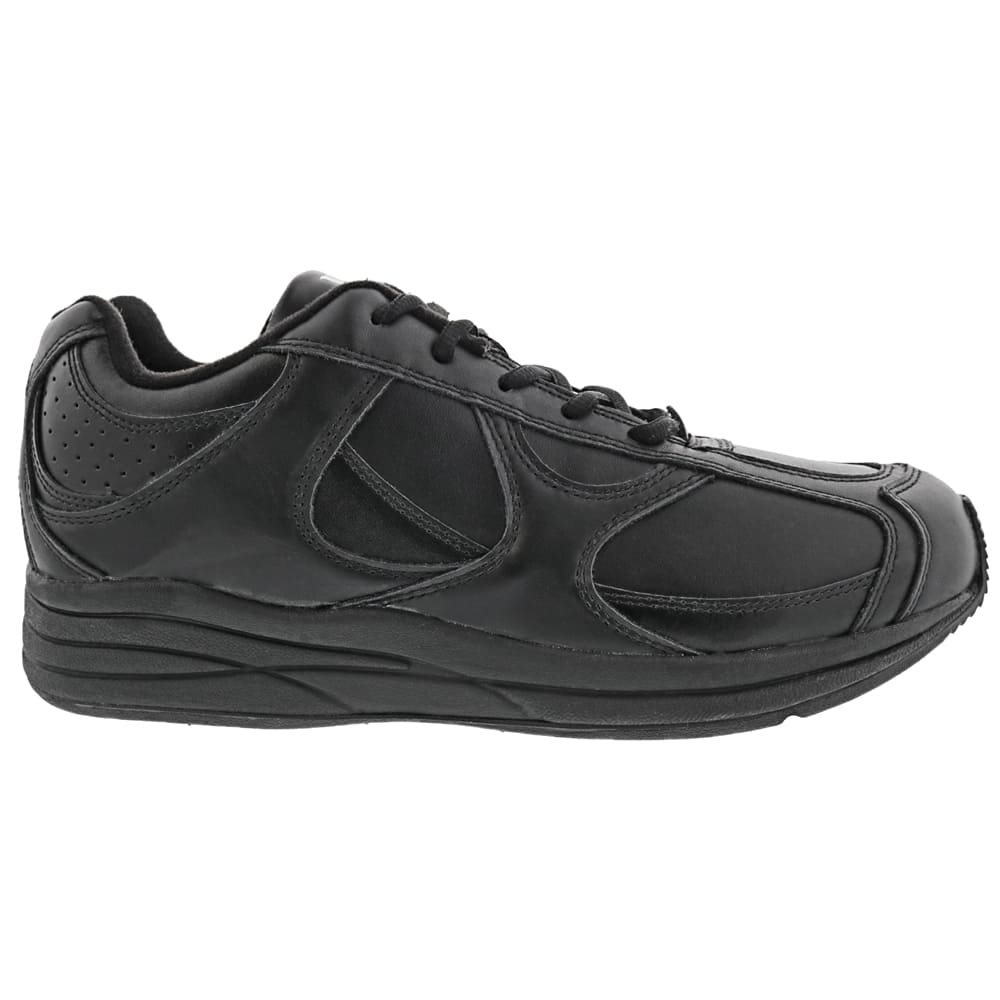 Drew Men's Surge Leather Athletic Shoes Black is one of the industry's few athletic shoes with added depth and double added depth in one shoe. Drilex®-covered insoles with AGEIS® anti-microbial features keep the foot cool and dry. A built-in heel cushion pad and rocker bottom with a wide shank add to the shoe's overall comfort and performance.