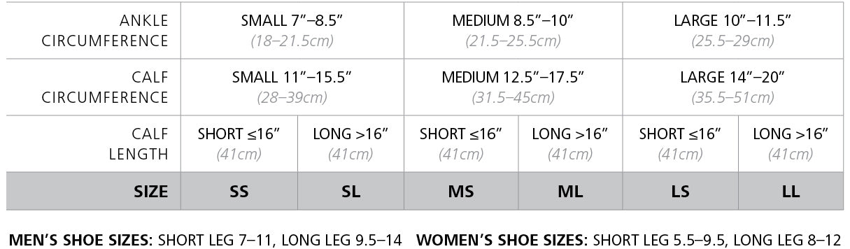 *Sizing for graduated compression socks, stockings & armsleeves differs significantly from typical sizing, and is based on precise measurements. Each brand also varies. To ensure you are ordering the correct size for you, please refer to the size chart for this specific product before making your selection.