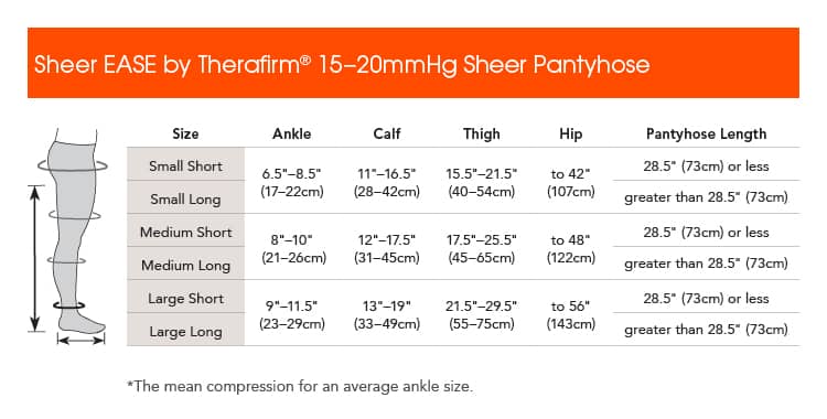 Sheer EASE by Therafirm closed toe Pantyhose 15-20 mmHg, is a Sheer Super Soft, breathable material, with all day wear and comfort. Delivers a controlled amount of Pressure greatest at the ankle and gradually decreases towards the top of the stockings, to help promote better blood flow. Soft knit-in waistband to prevent rolling.