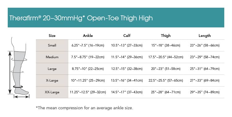 Therafirm Moderate Support 20-30 mmHg Men's and Women's Thigh-High Stockings, Open Toe Thigh High style stockings feature a soft, non-restrictive uni-band that stays in place, no garter belt or adhesive required.