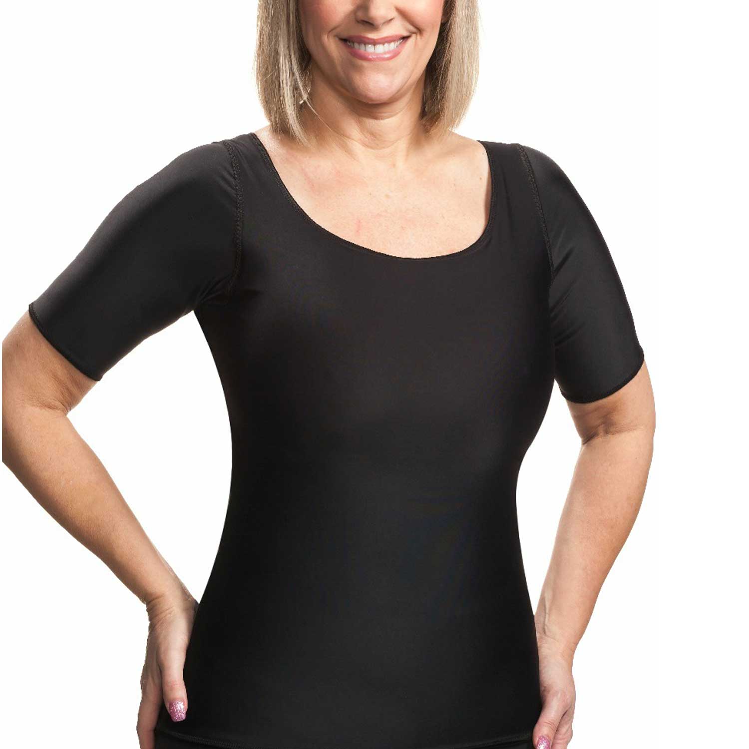 Wear Ease Fitter's Comments: Garment should fit snug and feel comfortable. If it feels too tight than go up a size. If you have tried style 910, the Slimmer, this T will feel more snug because it has a double layer of fabric on the back that the Slimmer does not have.
