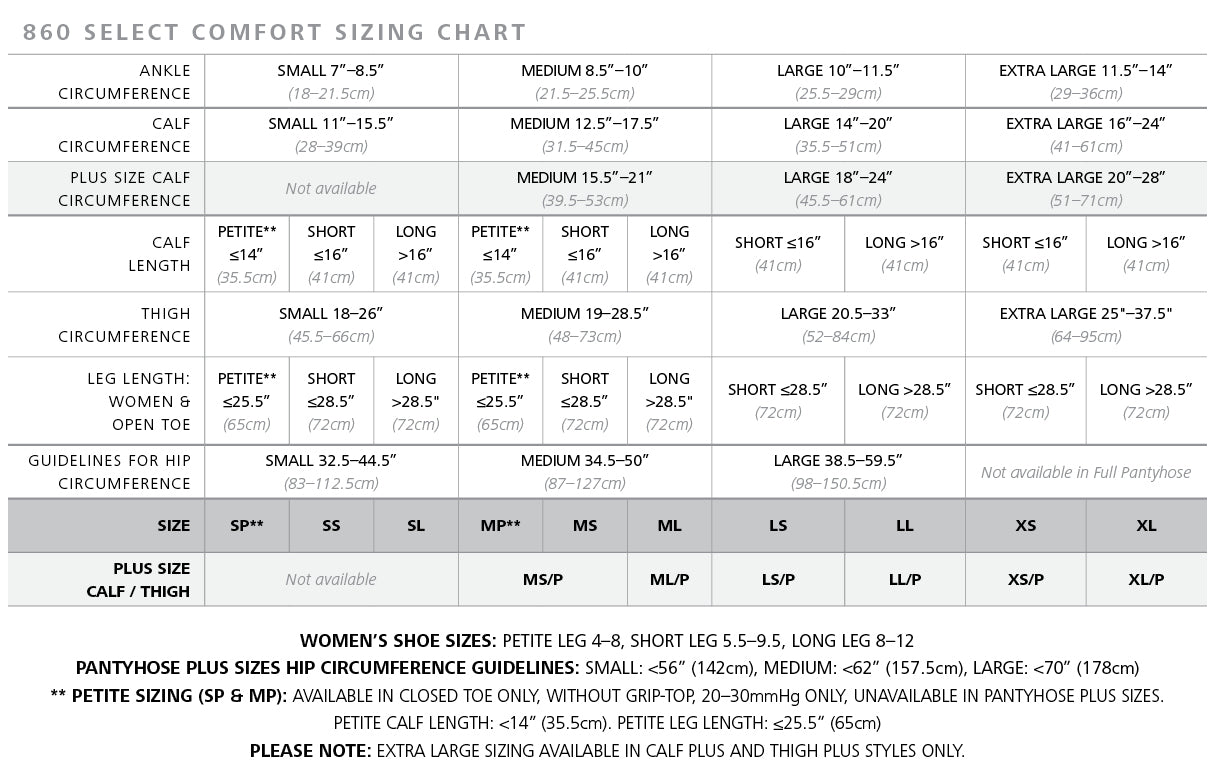 *Sizing for graduated compression socks, stockings & armsleeves differs significantly from typical sizing, and is based on precise measurements. Each brand also varies. To ensure you are ordering the correct size for you, please refer to the size chart for this specific product before making your selection.