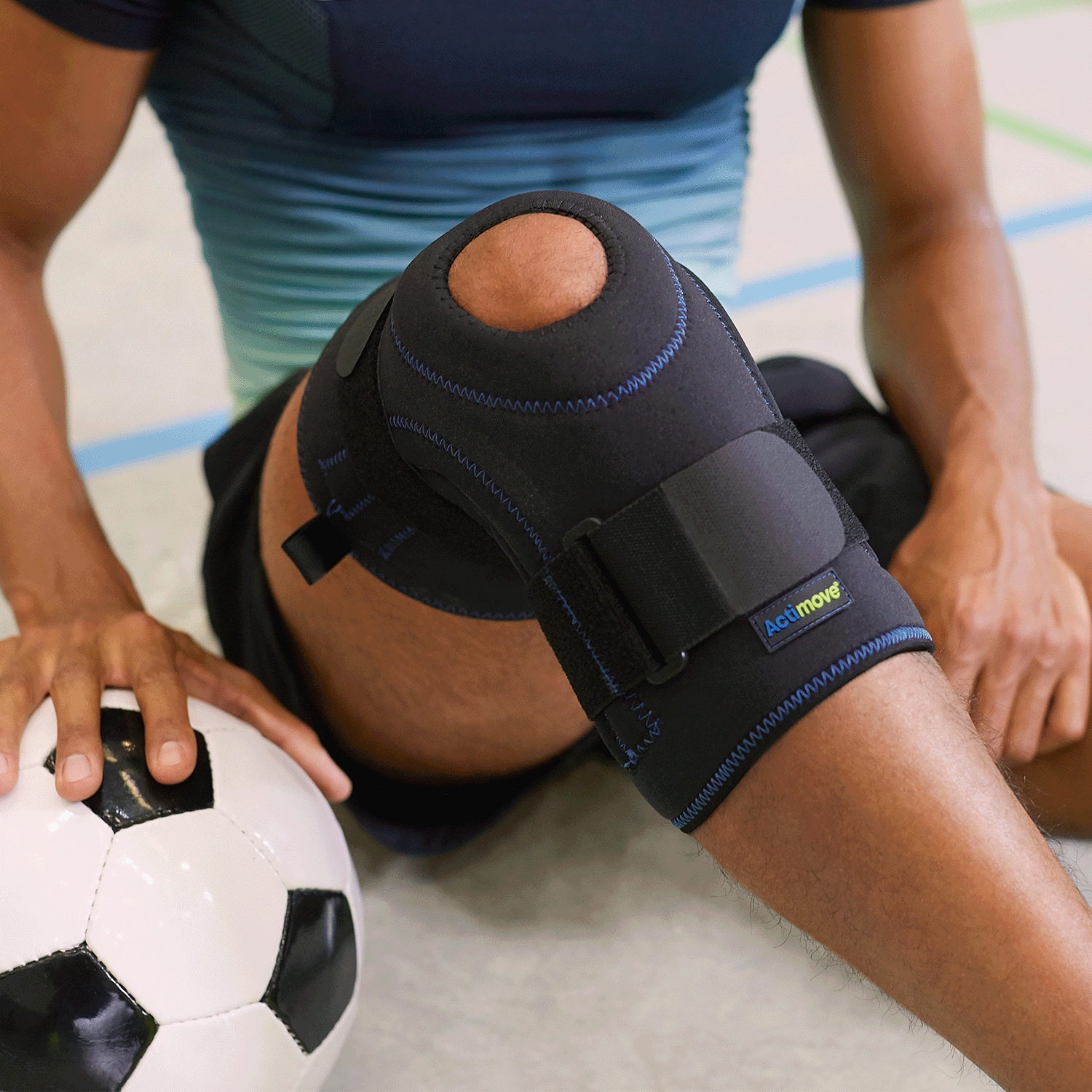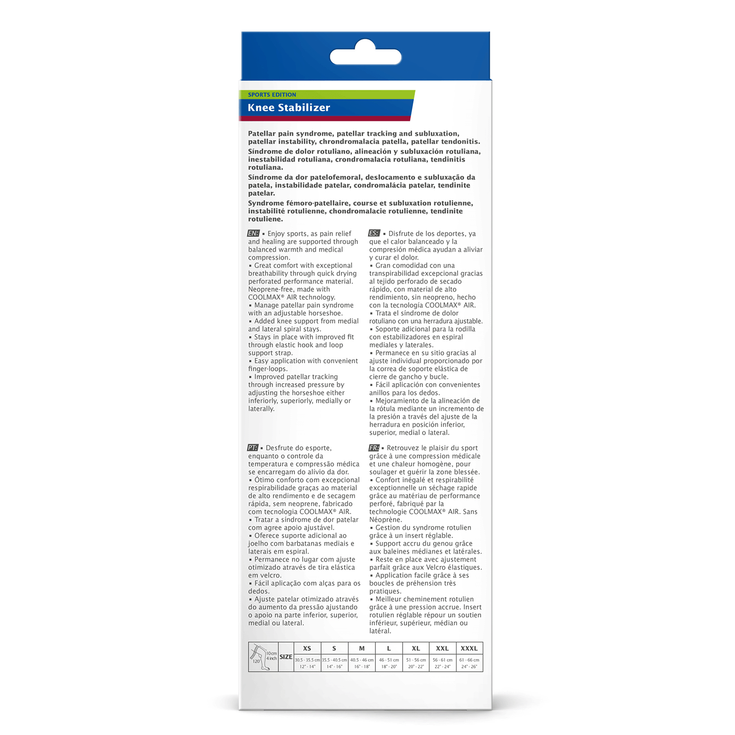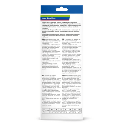 Actimove® Sport Knee Stabilizer Adjustable Horseshoe and Stays is designed to provide relief to those with active lifestyles who experience knee pain from runner's knee, patellar pain syndrome, or patellar instability. This knee stabilizer offers balanced warmth and medical compression to support pain relief and healing. Made with a neoprene-free, elastic, and lightweight material that utilizes COOLMAX® AIR technology, it helps keep you cool and dry by quickly drying and wicking away moisture. The two spiral stays on each side provide added stability, while the fully adjustable horseshoe and elastic hook and loop support strap ensures a secure fit and proper pressure for the kneecap. With convenient finger-loops for easy application, this knee stabilizer is perfect for those in need of targeted and reliable support.