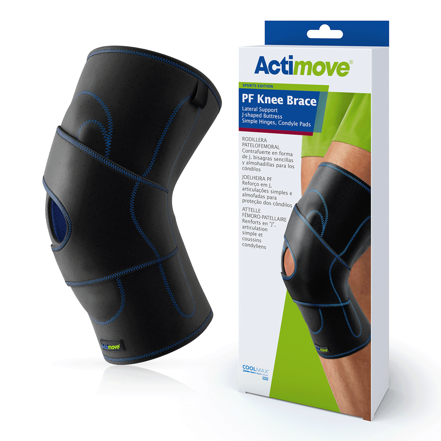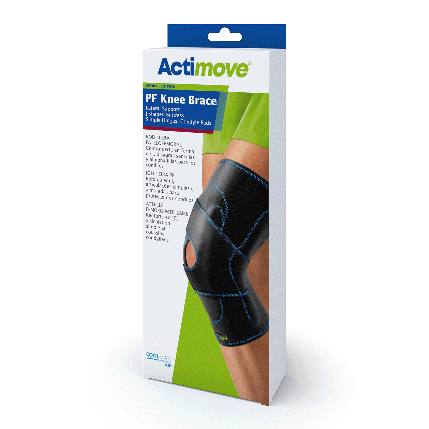 The Actimove® Sports Edition Right PF Knee Brace provides balanced warmth and medical compression, aiding in pain relief and healing. Made with COOLMAX AIR technology, it offers excellent moisture management and uses skin-friendly materials for maximum comfort. With validated compression properties, this brace also offers support and stability to help reduce swelling and manage pain. The lateral support and simple hinges of Actimove Sport Right PF Knee Brace improve stability and support to the knee, while the sleeve design and special lateral patellar femoral support aid in managing pain.
