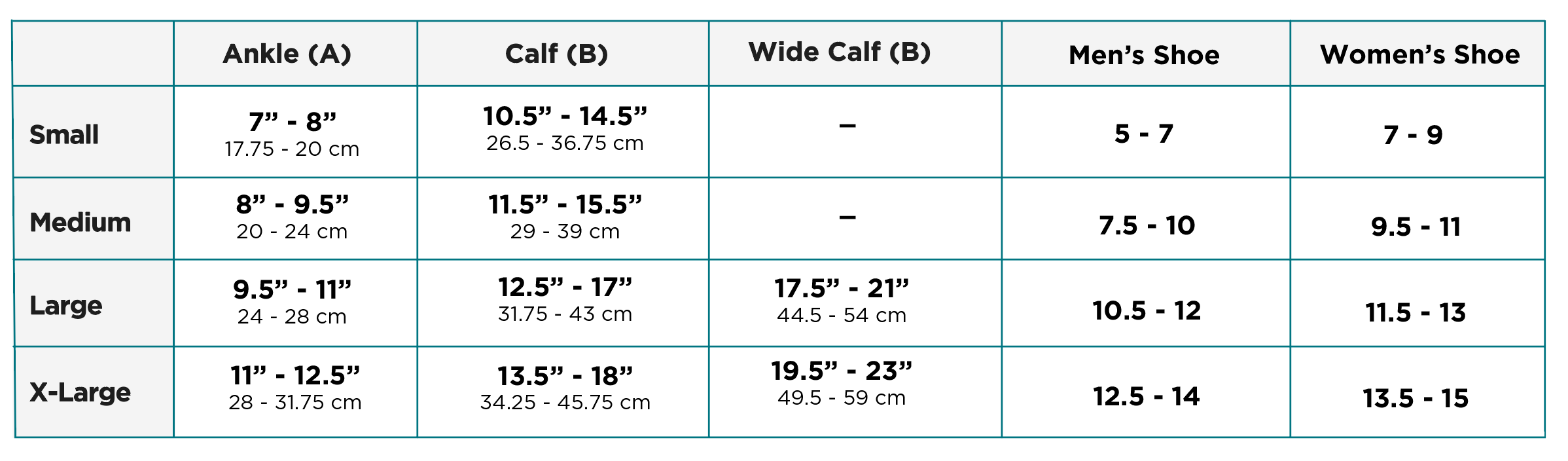 *Sizing for graduated compression socks, stockings & armsleeves differs significantly from typical sizing, and is based on precise measurements. Each brand also varies. To ensure you are ordering the correct size for you, please refer to the size chart for this specific product before making your selection.