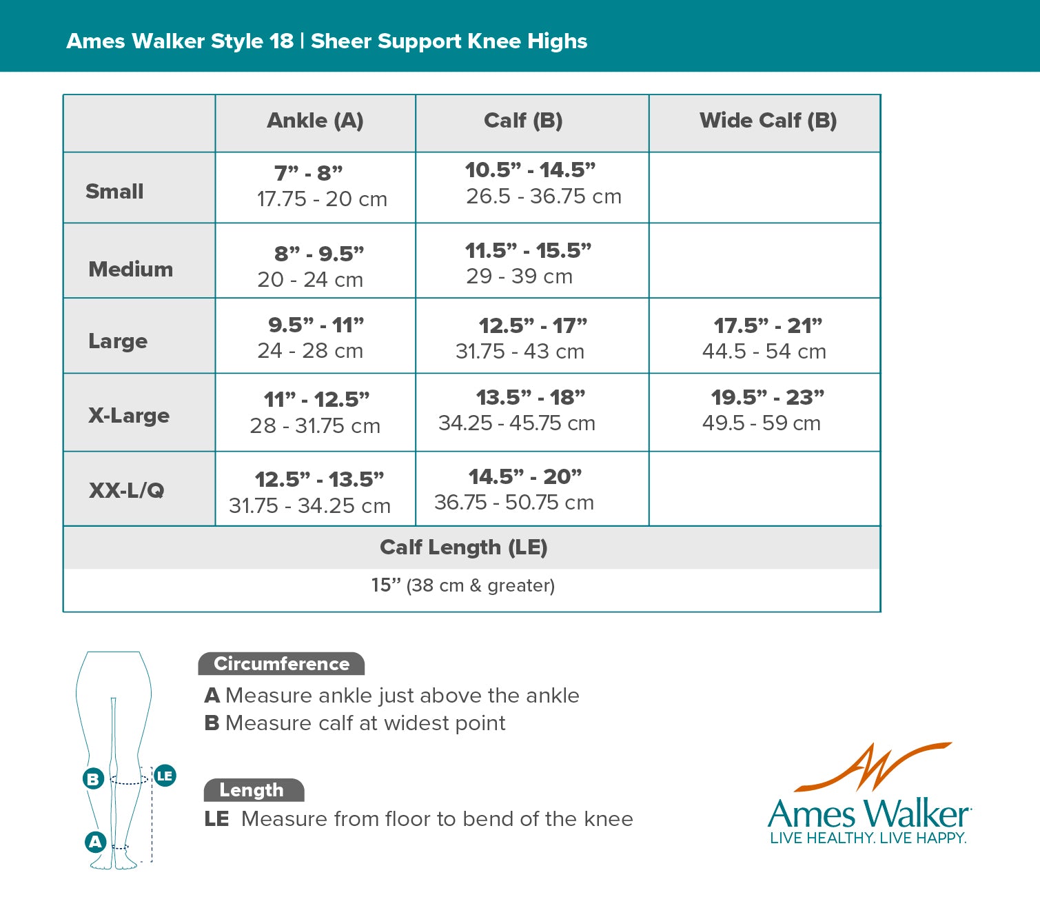 The AW Style 18 Sheer Knee High provides moderate 20-30 mmHg compression to effectively support your legs all day. Featuring reinforced heel and toe pockets, a soft, non-restrictive top band, and a choice between regular and wide sizes, these knee highs offer a dependable fit with a touch of elegance. Perfect for those who want both style and support in a durable compression sock.