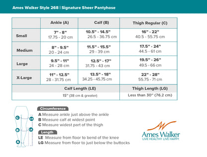 Experience firm compression support with a stylish finish in the Ames Walker Style 268 Signature Sheer Open Toe Pantyhose. Designed with a sleek, semi-sheer appearance and open-toe styling, they’re a versatile choice for both business and casual wear. The flat seams, reinforced heel, and breathable poly/cotton gusset ensure comfort without sacrificing durability. Whether you're traveling, working, or simply staying active, these American-made pantyhose provide the relief and support your legs deserve—without compromising your style.