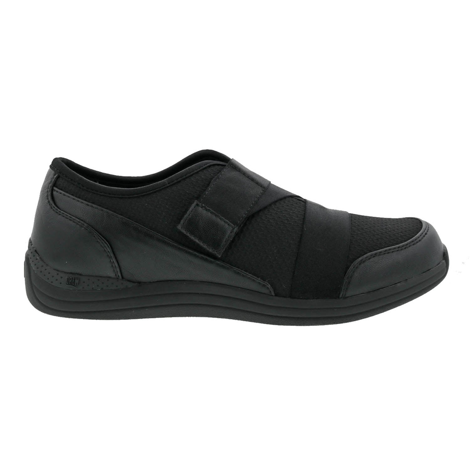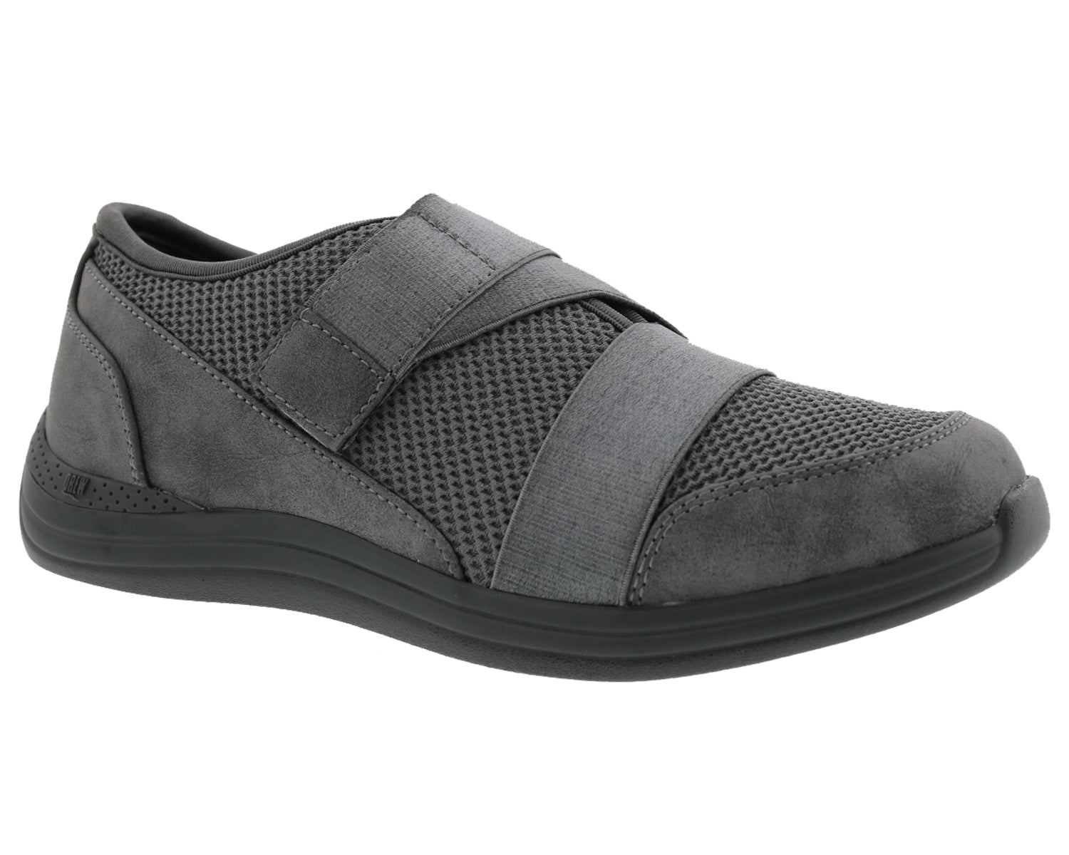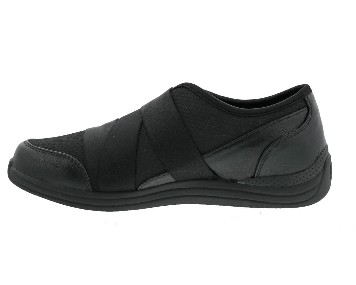 Cozy and fashionable, the Drew® women's Aster is a slip-on cross strap is crafted with soft, supple materials. An adjustable hook and loop closure provides easy on-easy off wear. The Drilex® fabric lining is soft and wicks away moisture and offers interior comfort. Complete with Drew's Plus Fitting System - Two removable footbeds for added and double depth.