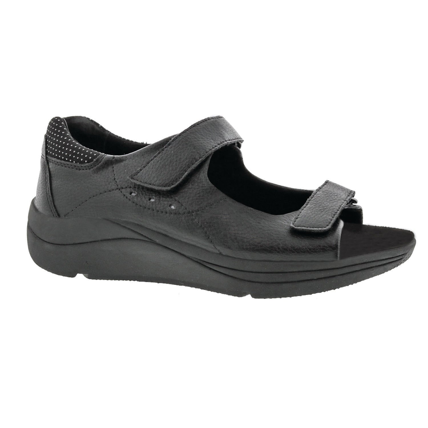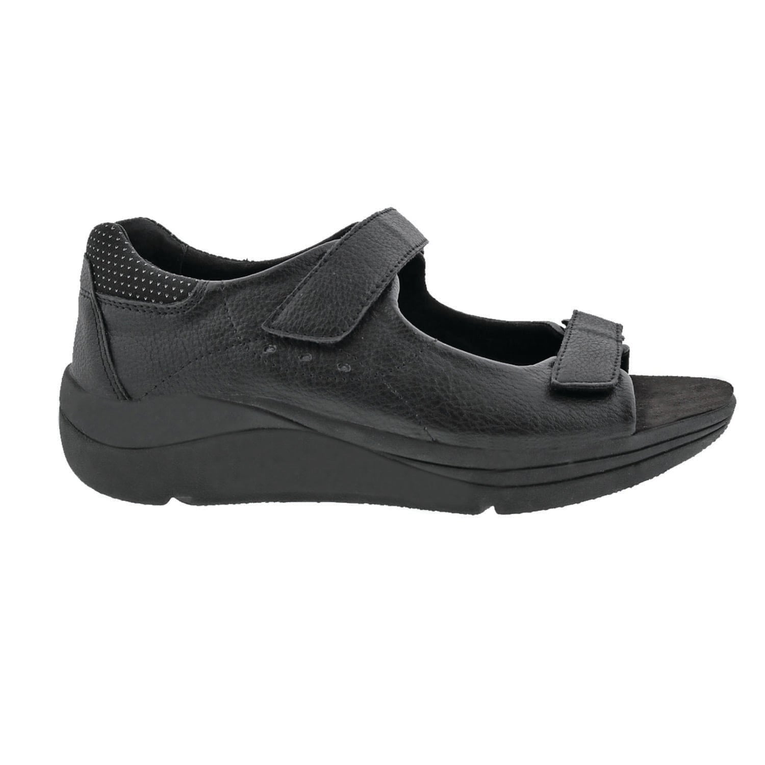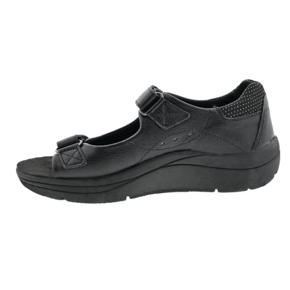 Roomy and comfortable full-heeled sandals, the women's Shasta features two adjustable hook and loop closures. Fully leather lined with great styling and full heel for support and an open toe. The removable insole can be replaced with your own prescribed orthotics if needed. The outsole is shock-absorbing and helps disperse energy so your back, feet, and knees will thank you, even if you stand or are walking all day!