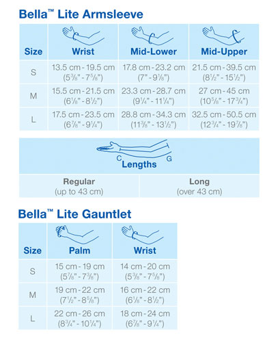 JOBST Bella Lite Armsleeve & Gauntlet Size Chart