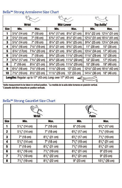 Jobst Bella Strong Armsleeve and Gauntlet Size Chart