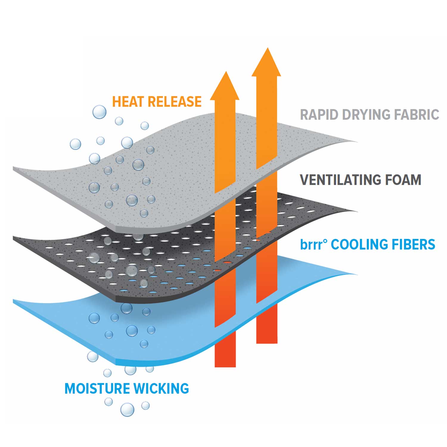 Patent-Pending 3-Layer Design: Combines a Rapid Dry Outer Layer that wicks away moisture, a Ventilated Foam Middle Layer for enhanced airflow and quick drying, and a brrr® Fiber Inner Layer that provides a cool, refreshing feel against the skin.