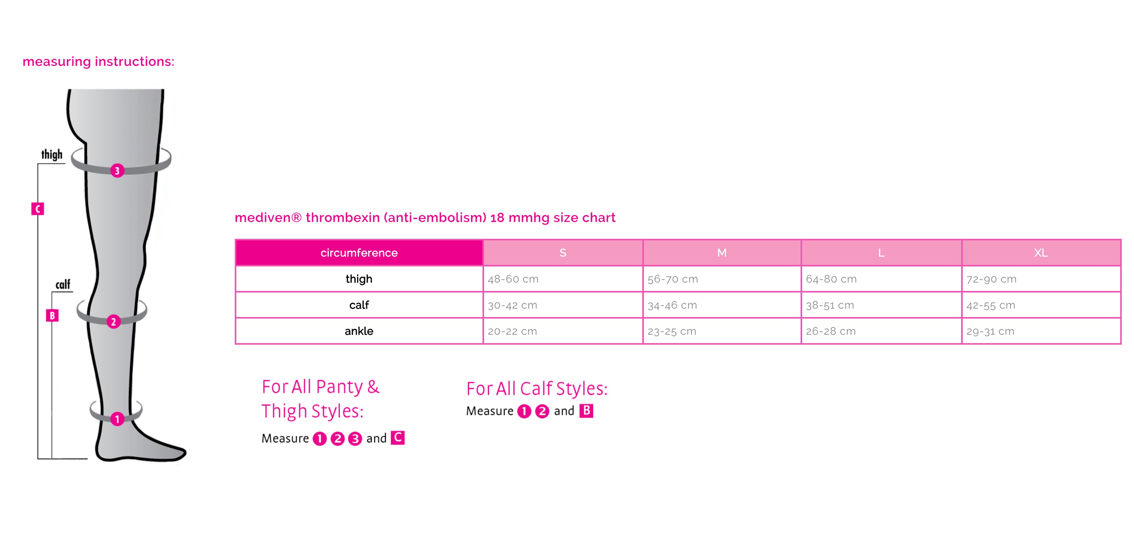 Medi Thrombexin Anti-Embolism 18mmHg Size Chart