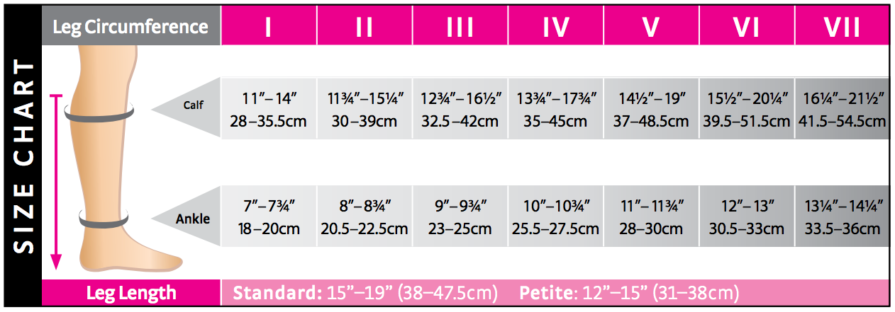 *Sizing for graduated compression socks, stockings & armsleeves differs significantly from typical sizing, and is based on precise measurements. Each brand also varies. To ensure you are ordering the correct size for you, please refer to the size chart for this specific product before making your selection.
