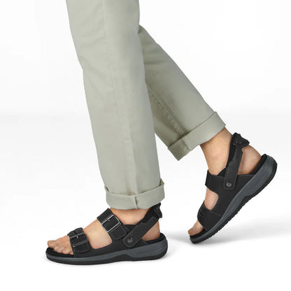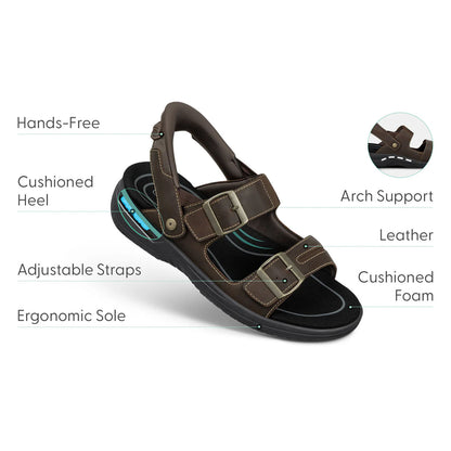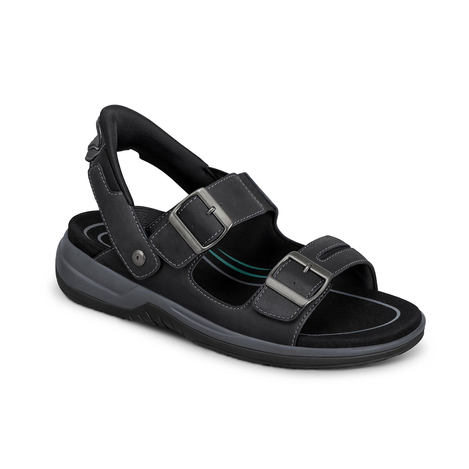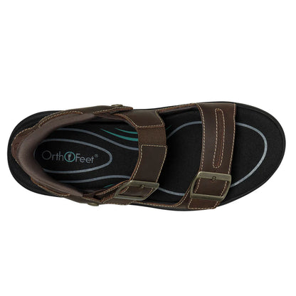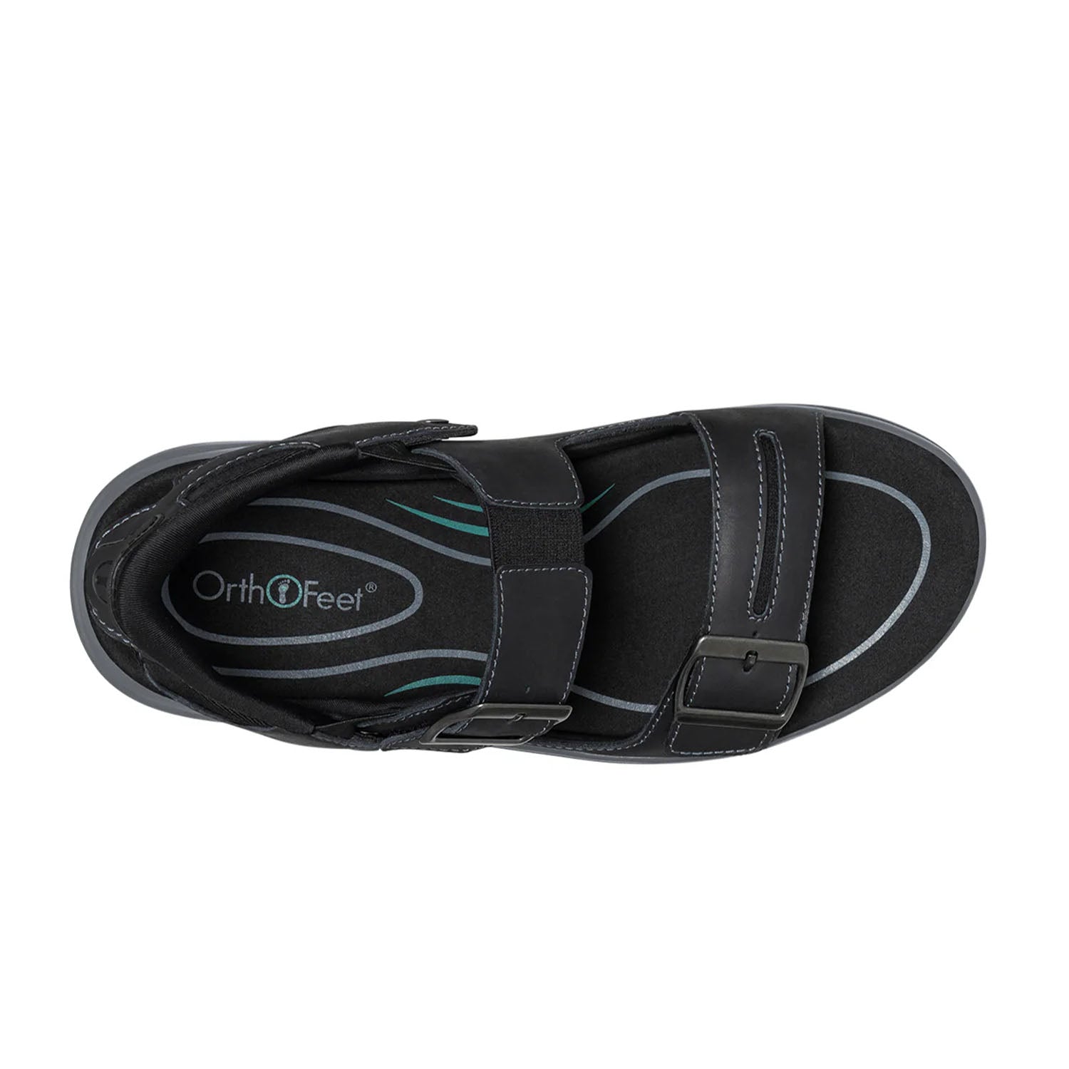 Experience ultimate warm-weather comfort in this easy-wearing, health-focused leather sandal. With our patented hands-free technology, there's no need to bend down — just step in and go. The buckles are decorative, and the midfoot and forefoot straps can be pulled to adjust for the perfect fit or opened completely. Step into your day with Orthofeet’s advanced support and heel-to-toe pain relief. Your world is waiting.