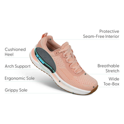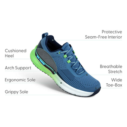 Get ready for podiatrist-recommended comfort that's born to run. From the lightweight breathable nylon upper to the stable, high traction outsole, Relay keeps your mobility in the lead. Leave pain behind with a heel-to-toe max cushioned sole and a near custom fit, while the Ortho-Cushion™ System offloads pressure and aligns ergonomic support for every stride.
