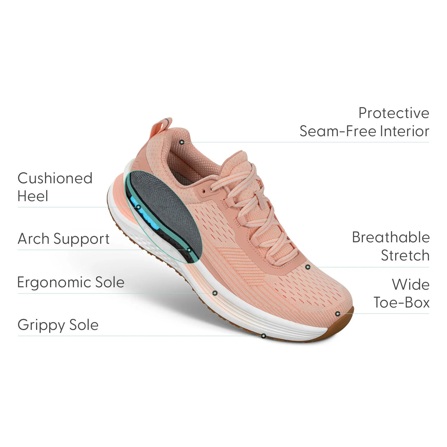 Max cushion sole - offers superior cushioning at the heel & ball of foot.