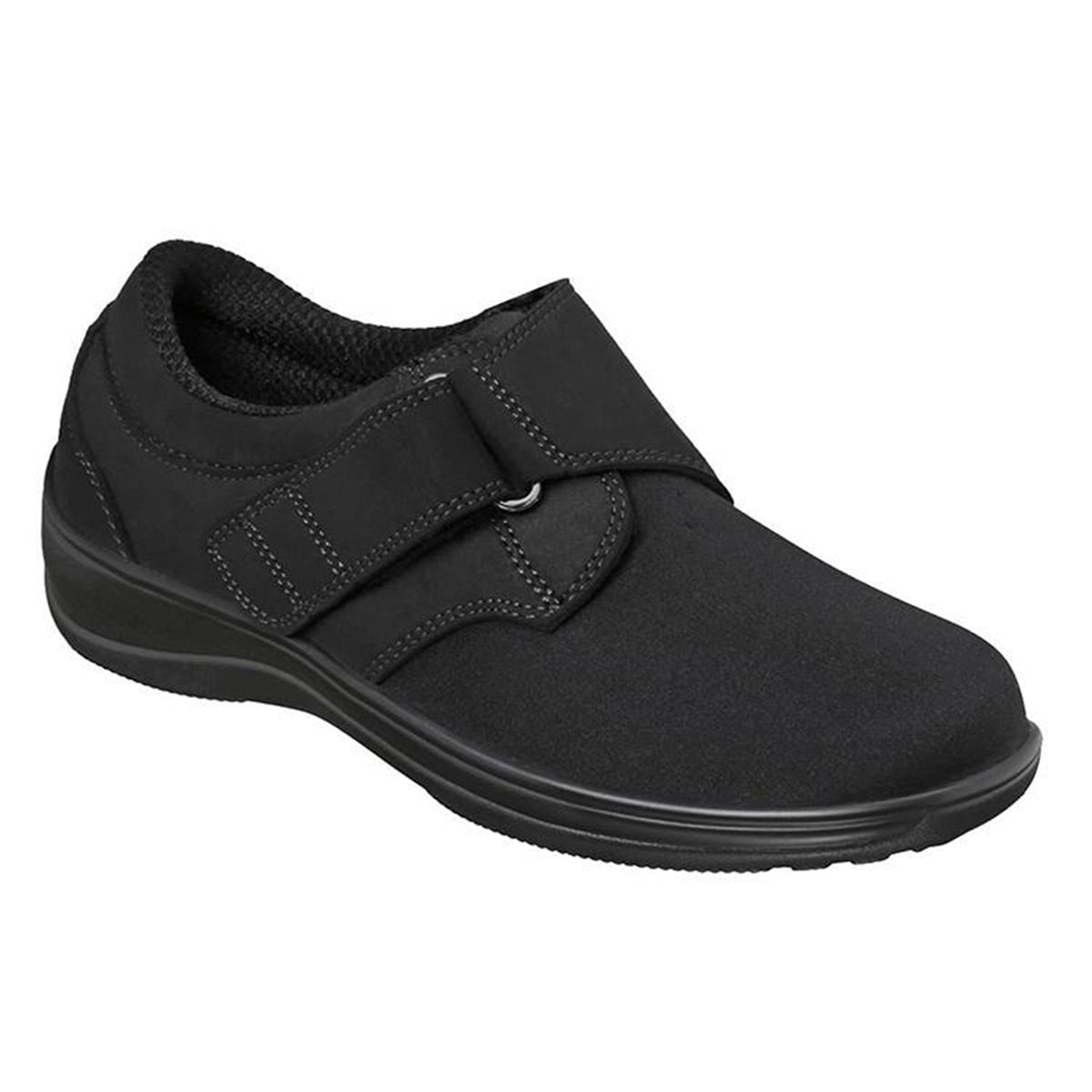 Enjoy exceptional fit and comfort with Orthofeet's Wichita-Black Stretchable women’s casual shoes that offer maximum protection against pressure points,a non-binding fit, and extra room for toe movement.