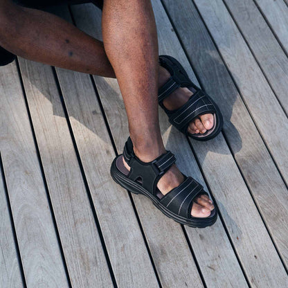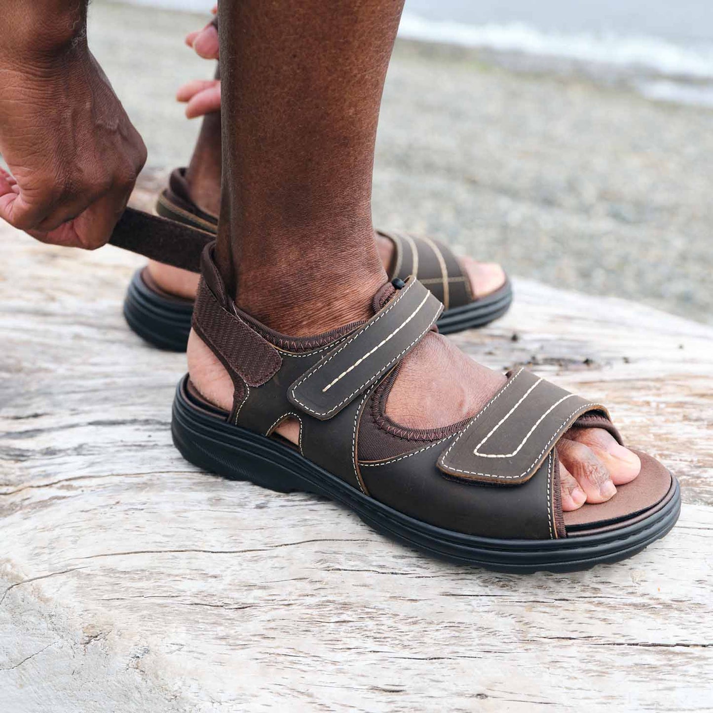 Experience the Hudson - a sophisticated and functional sandal perfect for summer wear. With its appealing leather construction, durable outsole, and gentle neoprene lining, this sandal offers both style and comfort. Adjust to your liking with the hook and loop straps, and customize your support with the removable footbed, ideal for use with orthotic insoles.