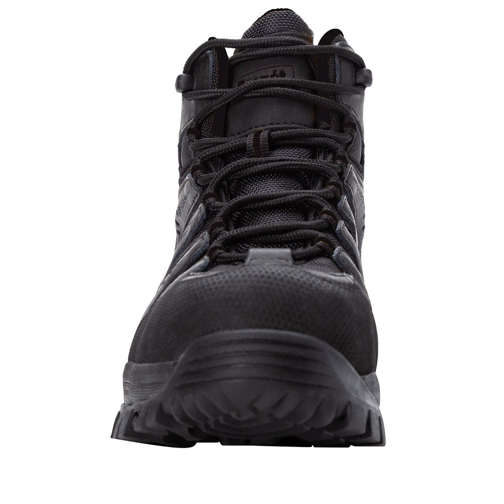 Propet Men's Sentry Boots (Safety Rated) has a Waterproof bootie construction inside a Crazy horse leather and nylon mesh upper with padded collar and tongue and abrasion-resistant rubber toe cap. Embedded Puncture resistant insole plus removable Open Cell insole that moves moisture from the foot for a cooler, healthier foot bed. EVA midsole with a high traction rubber outsole and toe guard for durable outdoor wear.