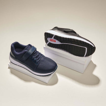 Featuring an easy slip-on style with a secure hook and loop strap and flexible elastic laces, this style is perfect for feet that tend to swell. The firm heel counter provides a snug fit, whereas the padded collar and tongue ensure a comfortable fit. The removable Ortholite® X25™ open cell foam insole offers exceptional cushioning for high-impact sports and daily activities. You can customize your fit with the included EVA spacer, allowing for additional depth, high instep, or heel slippage. With a robust EVA midsole and rubber tread inserts, these shoes provide unbeatable grip and durability on any surface