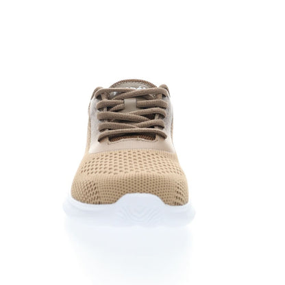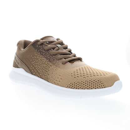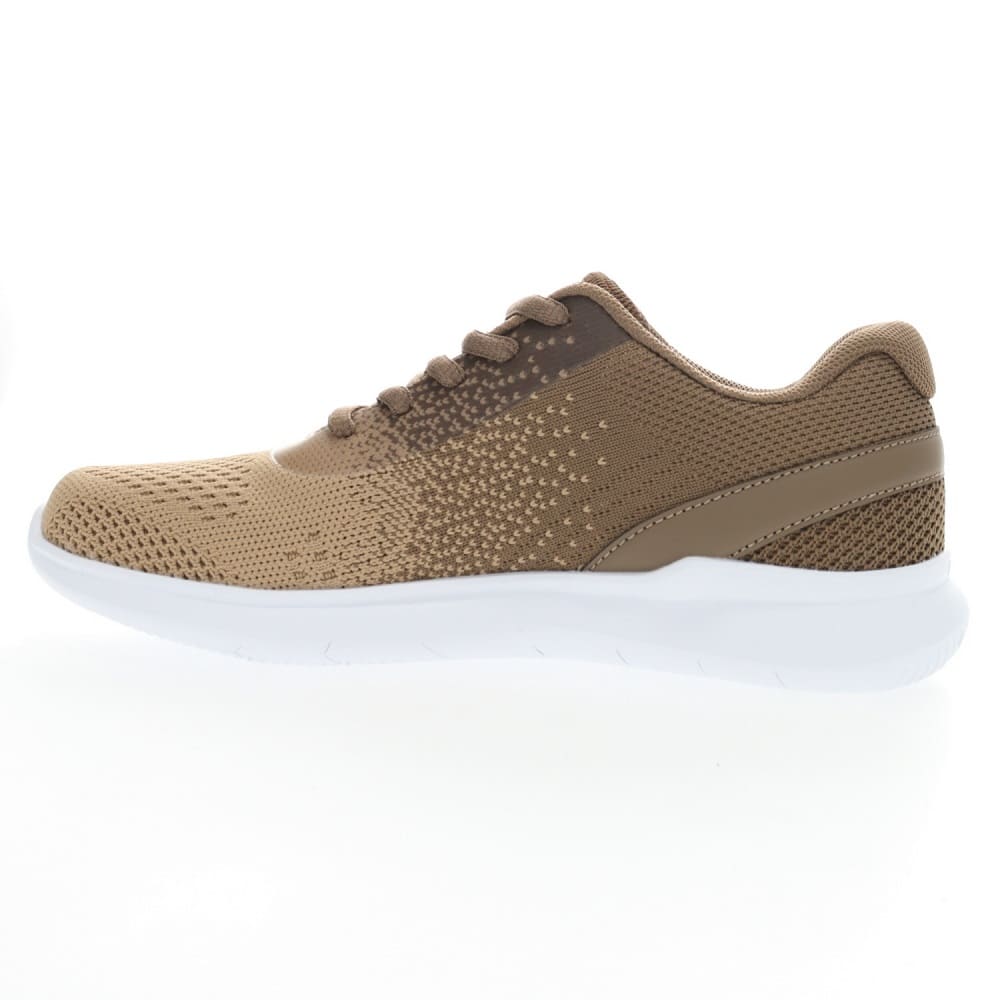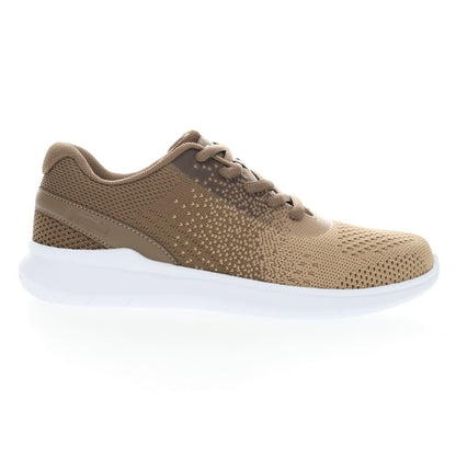 Propet Women's TravelBound Duo Shoes Tan is a Precision knit mesh upper. Embedded EVA cushioning board with open cell foam insole. Lightweight thermally controlled rubber outsole provides a long-lasting responsive cushion that keeps feet energized. With a removable footbed.
