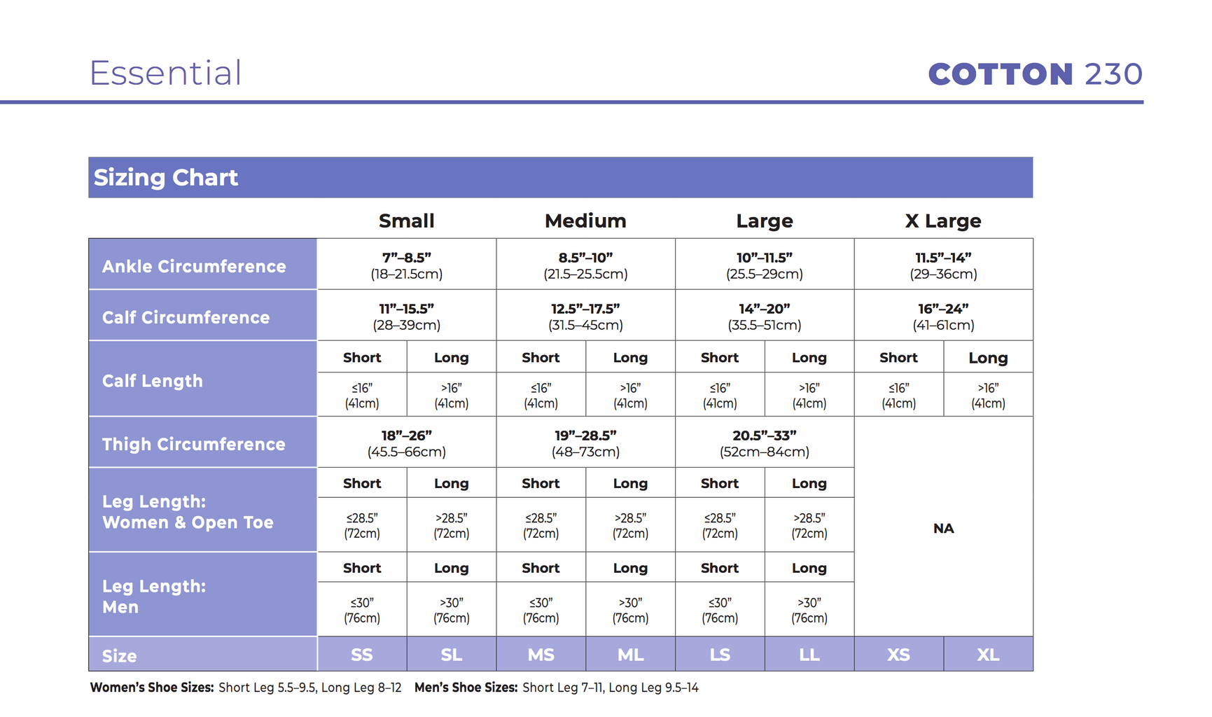 *Sizing for graduated compression socks, stockings & armsleeves differs significantly from typical sizing, and is based on precise measurements. Each brand also varies. To ensure you are ordering the correct size for you, please refer to the size chart for this specific product before making your selection.