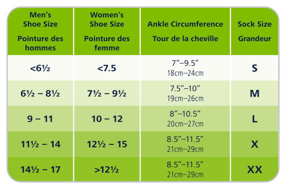 *Sizing for graduated compression socks, stockings & armsleeves differs significantly from typical sizing, and is based on precise measurements. Each brand also varies. To ensure you are ordering the correct size for you, please refer to the size chart for this specific product before making your selection.