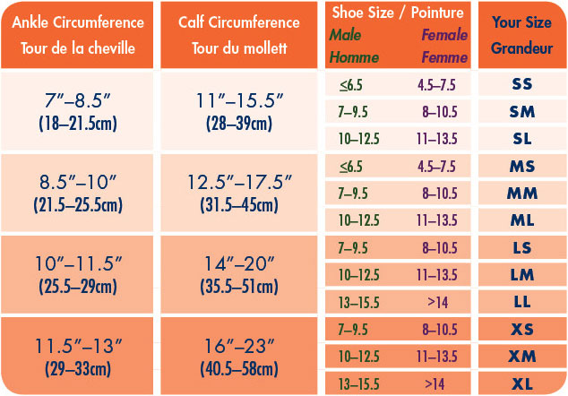 *Sizing for graduated compression socks, stockings & armsleeves differs significantly from typical sizing, and is based on precise measurements. Each brand also varies. To ensure you are ordering the correct size for you, please refer to the size chart for this specific product before making your selection.