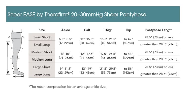 Sheer EASE by Therafirm closed toe Pantyhose 20-30 mmHg, is a Sheer Super Soft, breathable material, with all day wear and comfort. Delivers a controlled amount of pressure, greatest at the ankle and gradually decreases towards the top of the stockings, to help promote better blood flow. Soft knit-in waistband to prevent rolling.