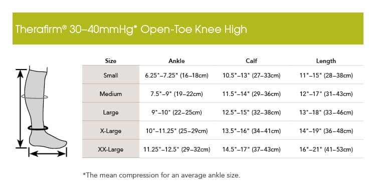 Therafirm Moderate Support 30-40 mmHg Men's and Women's Knee-High Stockings Open Toe Firm support over the calf stockings to help relieve moderate to severe ankle and leg swelling, moderate varicosities, and lymphedema.