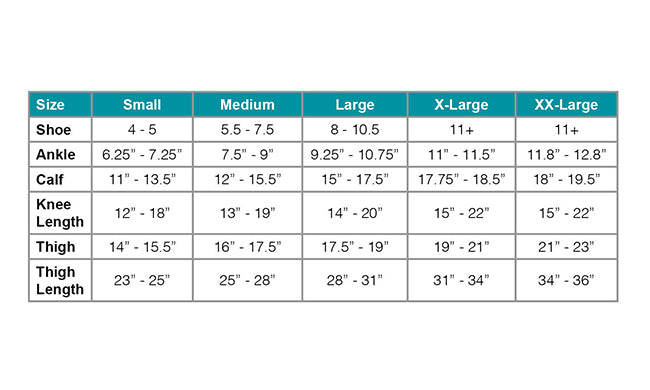 *Sizing for graduated compression socks, stockings & armsleeves differs significantly from typical sizing, and is based on precise measurements. Each brand also varies. To ensure you are ordering the correct size for you, please refer to the size chart for this specific product before making your selection.