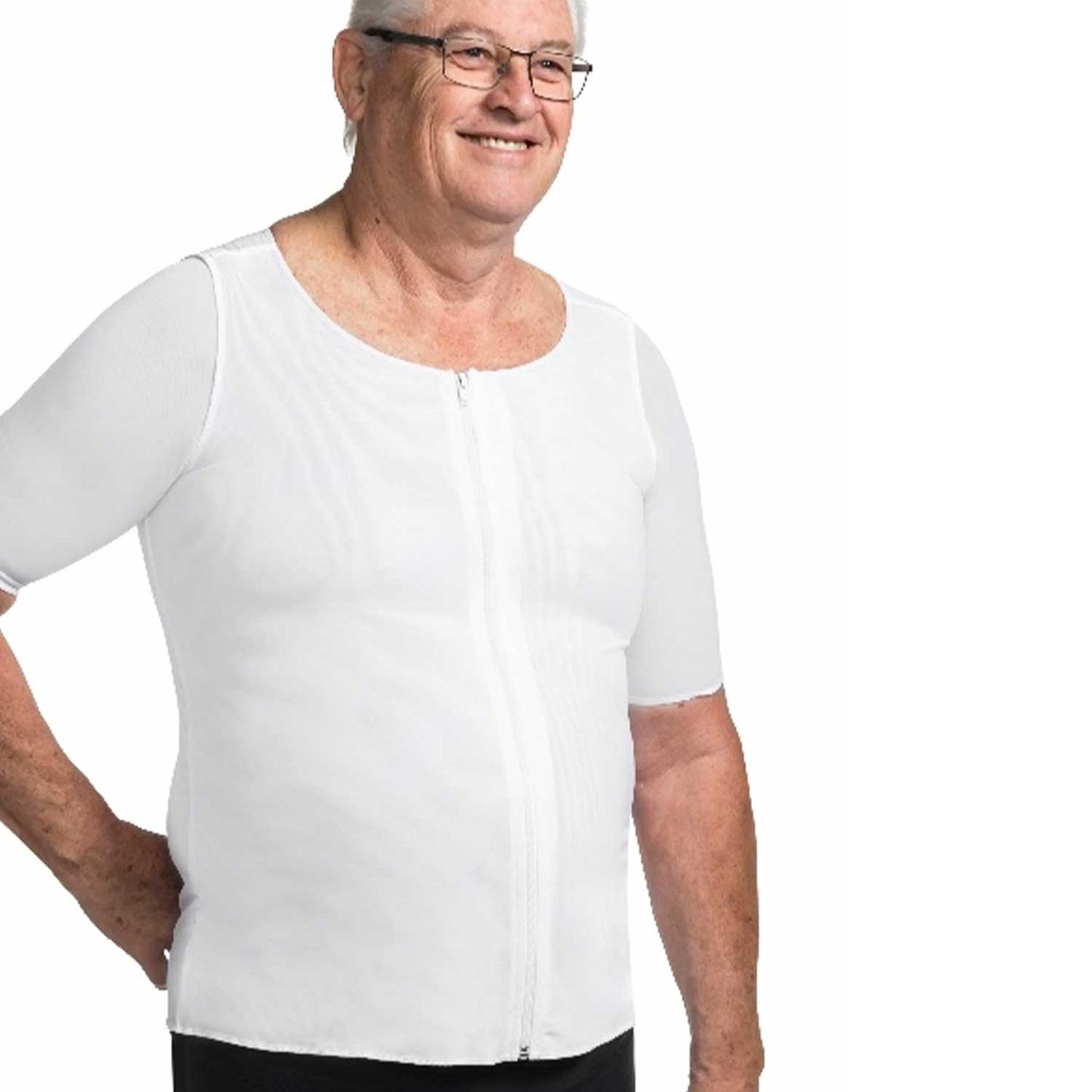 - Garment provides compression for: underarm, chest, abdomen, back and hips