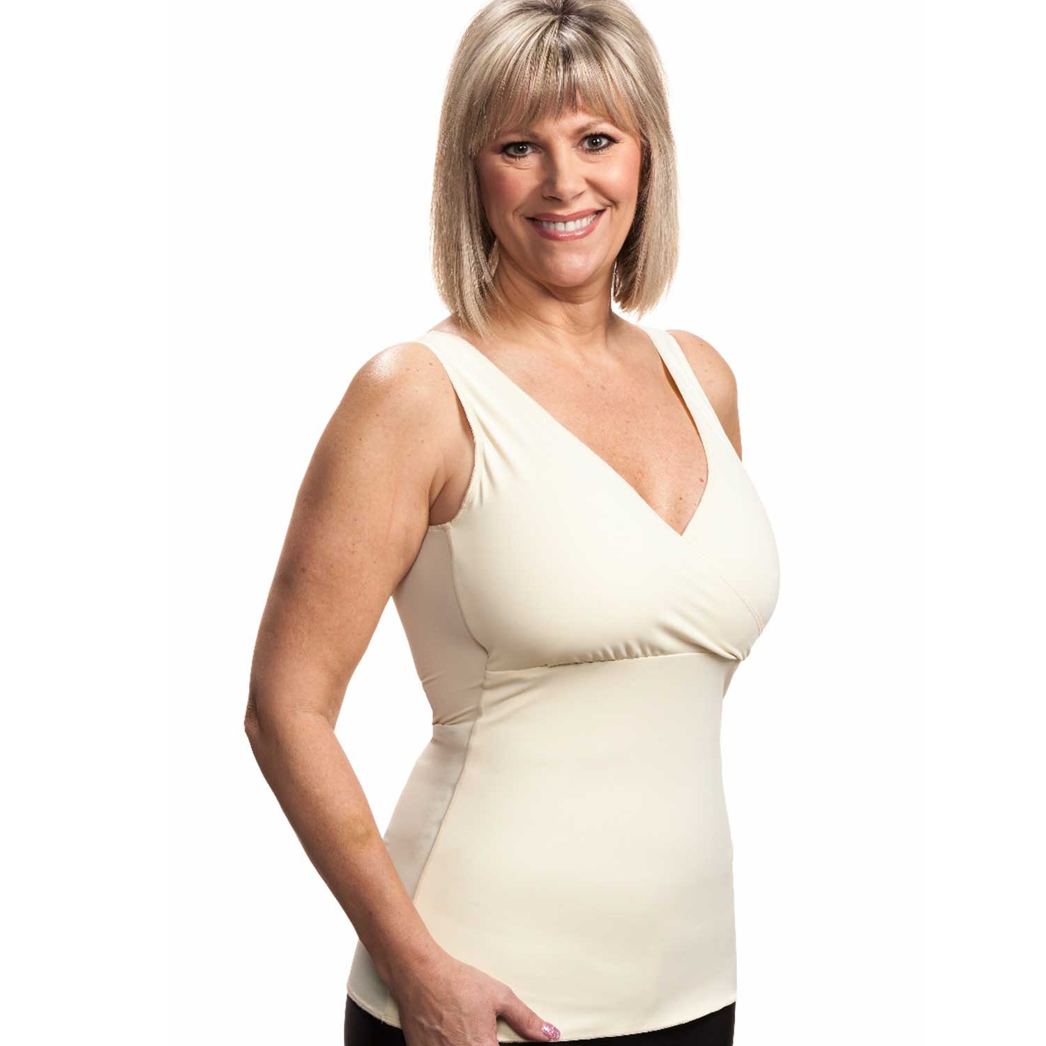 Experience the ultimate comfort with our Crisscross Shaper - the perfect alternative to a compression bra! Using scientific compression technology, our shaper provides immediate relief from swelling in areas such as under your arm, on your back and abdomen. With its double layer of supportive fabric and surplice neckline, this sleeveless shaper camisole is specifically designed to offer relief from truncal lymphedema. Get the support you need without compromising on style. (Although this garment is pocketed it may not provide enough support for all breast forms in which case a bra is required.)